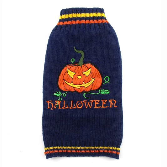 Spooky Halloween Pumpkin & Skull Dog Sweater — Cozy Fall Puppy Coat